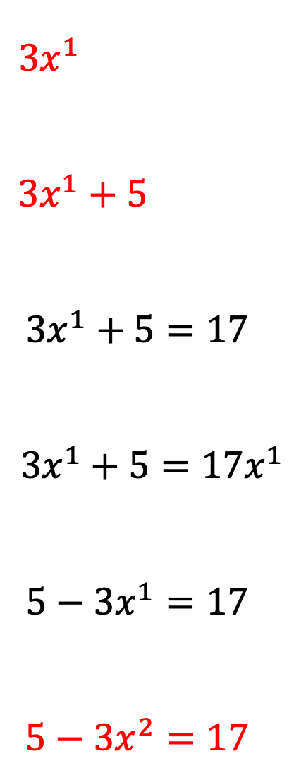 Second, we adjusted the last non-example according to the difference principle, so that it was super clear that the final example was negative because the index of 2 had changed to a 1; that was the only change, and so that’s what discriminates between being linear and non-linear.